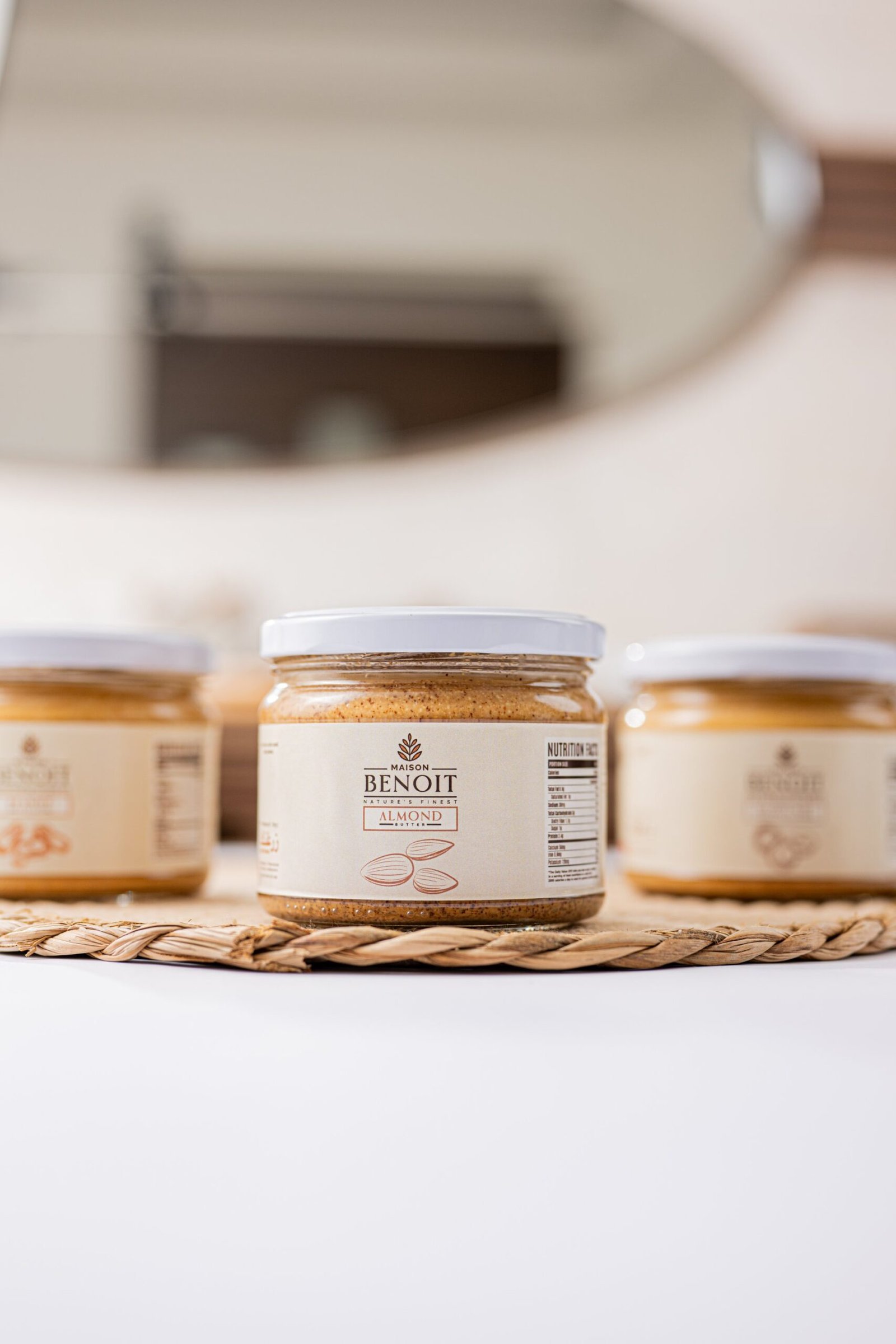 Indulge in the rich and wholesome experience of our pure almond butter. Made from 100% premium roasted almonds, this artisanal butter offers a velvety texture and nutty flavor to elevate your culinary moments. With no additives, no preservatives, and no colorants, every jar is a testimony of purity and craftsmanship, making it the perfect choice for health-conscious consumers seeking uncompromised quality.